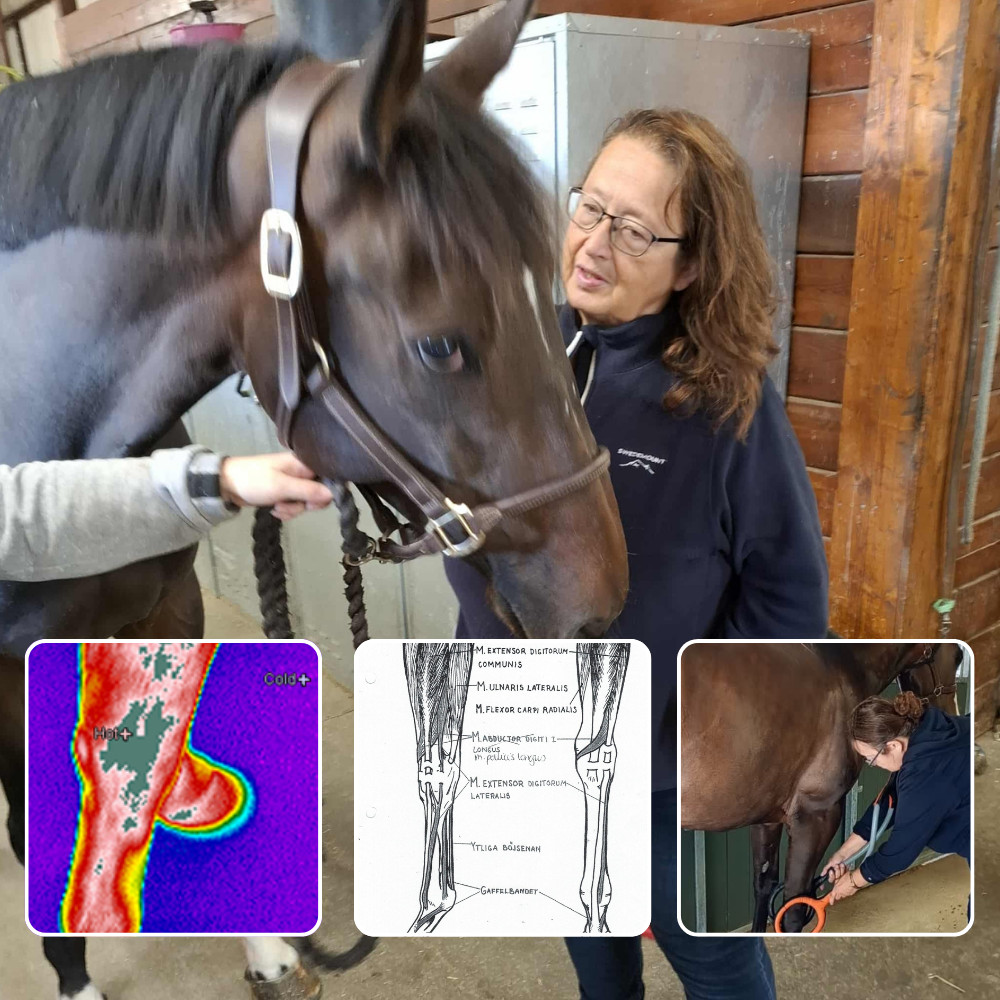 Min behandling er et supplement til veterinærens arbeid. Jeg bruker andre teknikker og spesialutstyr som kan støtte helingsprosessen og gi hesten et bedre grunnlag for restitusjon.